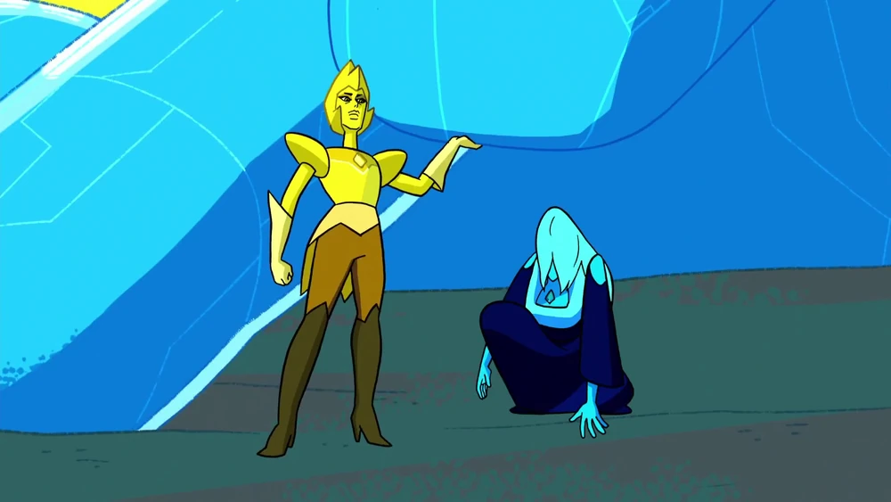 Diamante Amarelo não entende o desejo de Diamante Azul de preservar o legado de Diamante Rosa, já que elas têm métodos diferentes de aliviar a falta da antiga diamante. Contudo, Diamante Amarelo no fundo se importa com Diamante Azul, como ela optou em cantar uma música para confortá-la.