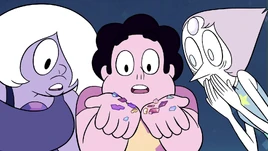 Ela a assusta e as duas começam a brigar, Steven pega a bolha de Pérola, ela fala para ele tomar cuidado e Ametista tenta pegar a bolha, elas acabam estourando-a, libertando vários Cacos de Pedras sem consciência. Assim, os três formam a equipe secreta para recuperar os cacos.