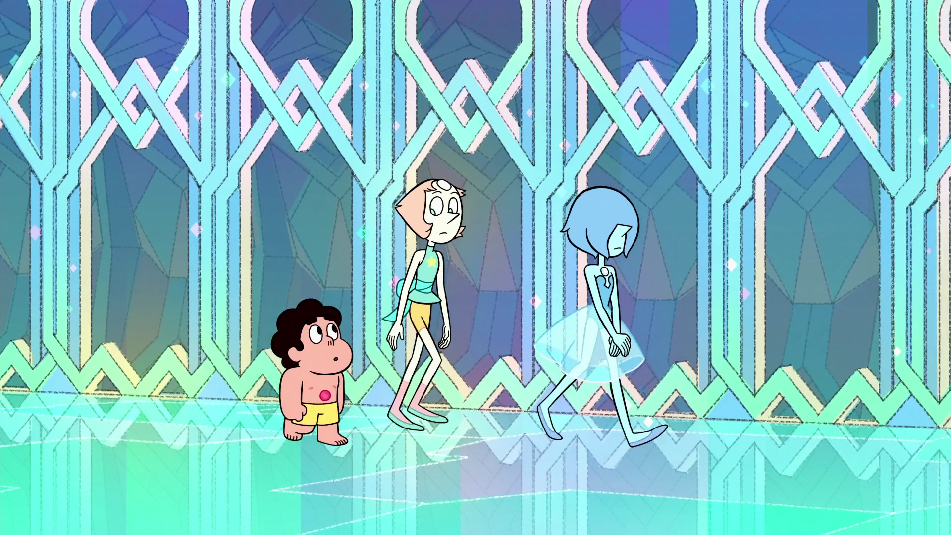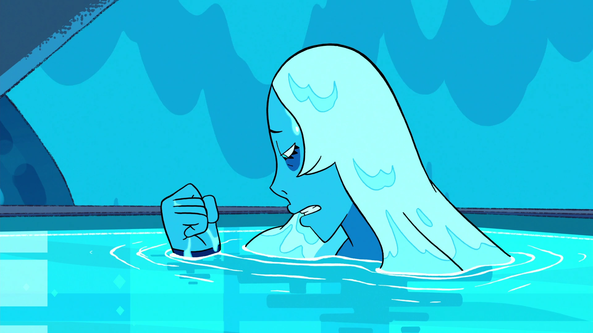 Steven pergunta se eles podem fazer isso de novo talvez após todos voltarem para a Terra, mas Azul diz que elas pararam jogar quando Rosa sumiu: a Era-2 era então iniciada. Ela chora. Steven se recompõe e sugere que eles passem mais tempo juntos, porém, Pérola Azul interrompe o momento a chamando para o próximo compromisso de Azul. Diamante Azul vai embora, esvaziando a piscina, e fala que talvez possam conversar sobre a Diamante Branco depois. Steven fica sozinho e fala a Pérola que entrou água em seu nariz. Ela o ajuda. Eles voltam para o quarto de Diamante Rosa.