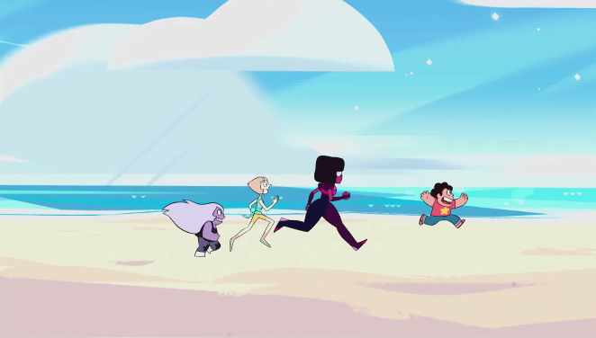 Garnet aparece e diz que vai lutar pelo lugar onde é livre, Pérola aparece e diz que vai lutar pelo nome de Rose Quartz, Ametista aparece e diz que vai lutar pelo planeta em que foi feita, Steven aparece e diz que vai lutar por tudo que todos querem que ele vire. A cena muda para as Crystal Gems observando as Gems do Planeta Natal e logo em seguida a segunda abertura normal aparece.