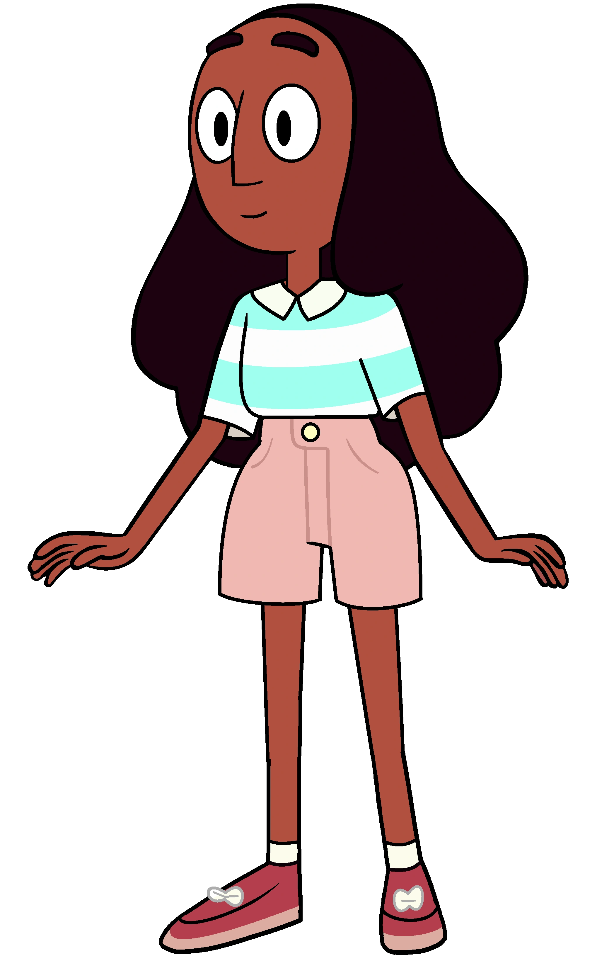 Connie é um pouco mais alta que Steven e tem pele morena e longos cabelos negros. Ao longo da série, usou muitas vestimentas diferentes. Em uma delas, usa uma camiseta branca com listras cianas, um short jeans marrons claro, Sapatos salmão e meias brancas.